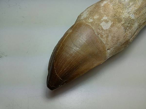 這一支比較特別的地方是牙根有凹進去的地方,那是替換齒的位置。 牙皮漂亮,說明及尺寸如圖示