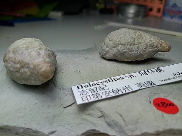 特別的是這件上面2個海林檎頂端都保有口部,照理附近還有肛門口及生殖孔,但沒有找到,保留口部已經是很棒的標本了。