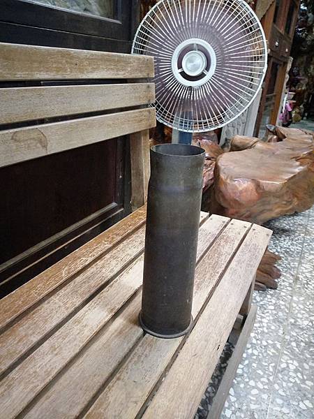 宜蘭三結民家的供桌上收到的 它原是砲彈殼,被拿來放滿香支 沒錯,它被當成香筒使用了 這戶人家真是太有才了 我本來就有收香筒及砲彈,能夠把這2個元素合一而被我收到,真是太有緣了....