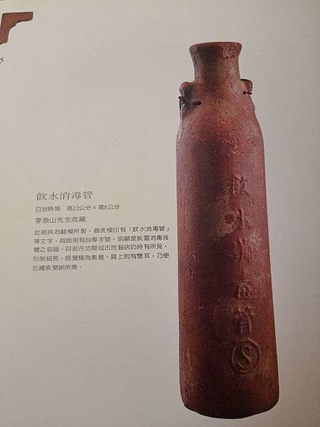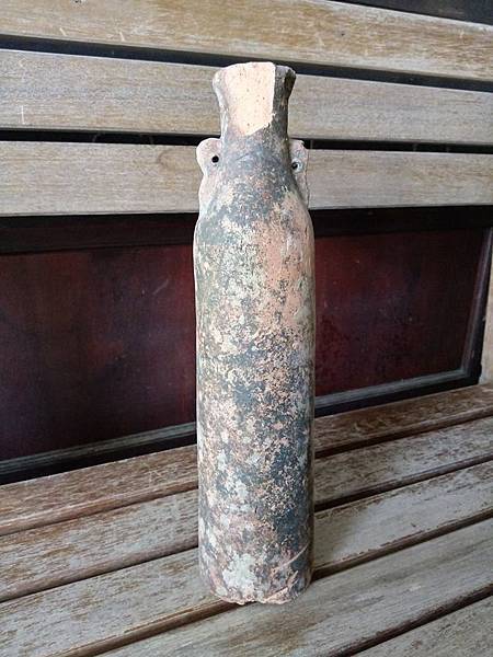 磚胎,細長瓶,有耳可以繫繩吊掛,瓶口及瓶內窄小,注入消毒水,再投井消毒井水