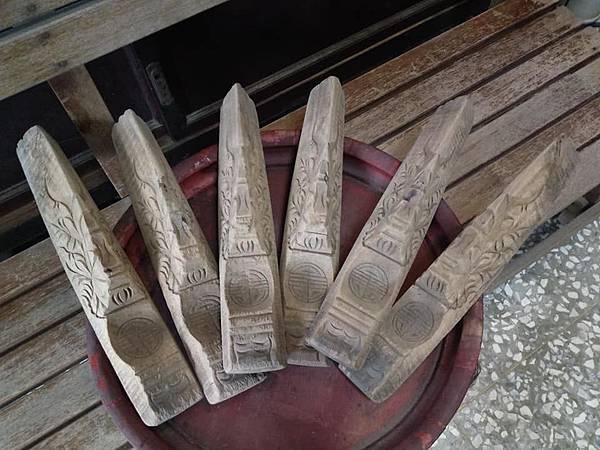 一組三件叫三獸,塔在中間,左右各兩對龍鳳,叫五獸