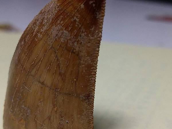 但有些人認爲相當一部分的鯊齒龍牙其實是屬於三角洲奔龍,但因爲缺少頭骨的證據仍沒有辦法理清,尤其是1、2吋的牙最容易混淆。會這樣說有一定的道理,畢竟鯊齒龍這麼大隻,這樣小牙實在不匹配,偏偏市場上又以這種小尺寸的鯊齒龍牙居多且主流還是歸類在鯊齒龍牙。但如果是三角洲奔龍牙我也覺得很酷,是一種小型的獸腳類肉食性恐龍。(感謝石友提供資訊)