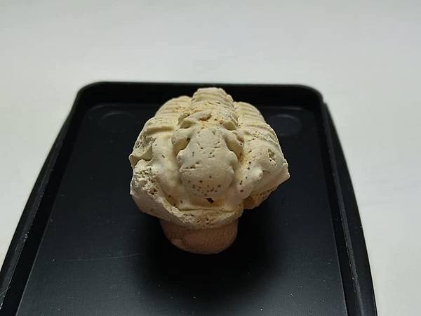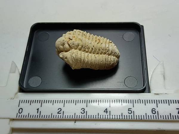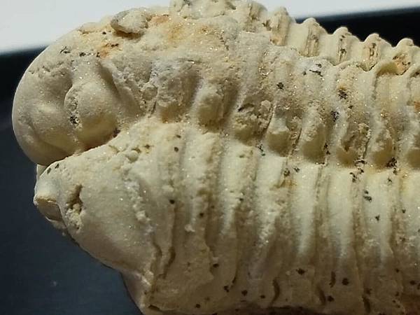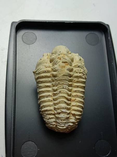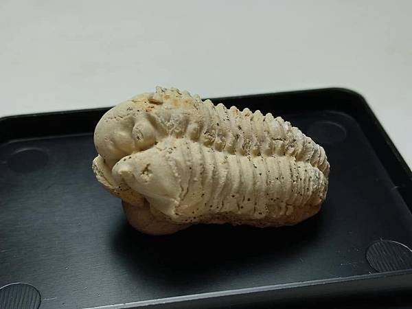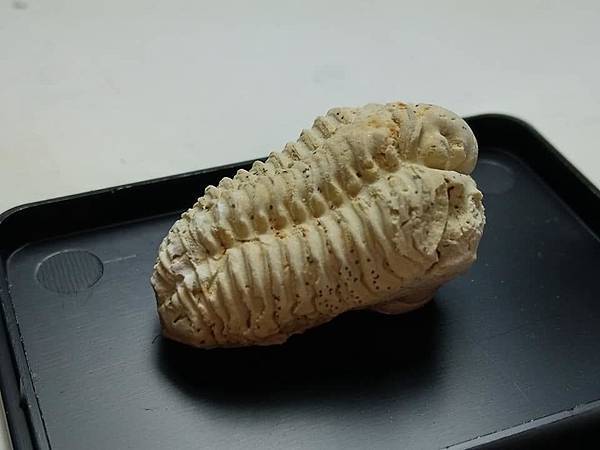 白雲石為六方晶系、菱面結晶、有完整的解理、有玻璃光澤,所以您看到蟲蟲的表面有細緻一點一點亮亮的感覺。非常特殊、有質感的三葉蟲化石。