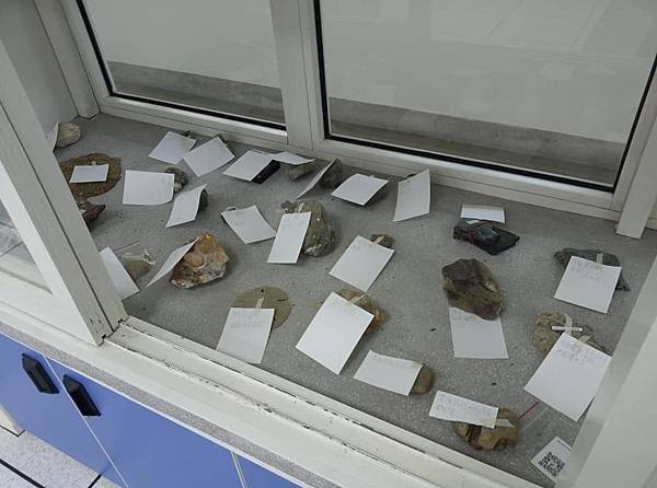 今天去大溪國中送化石,我一件一件說明哪塊是什麼地方產的什麼化石及背後的意義,其他的我要大溪國中的老師們自己去找資料、自己做說明牌、自己佈置,這樣做,化石才是真正屬於老師的、學校的。