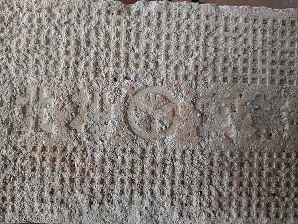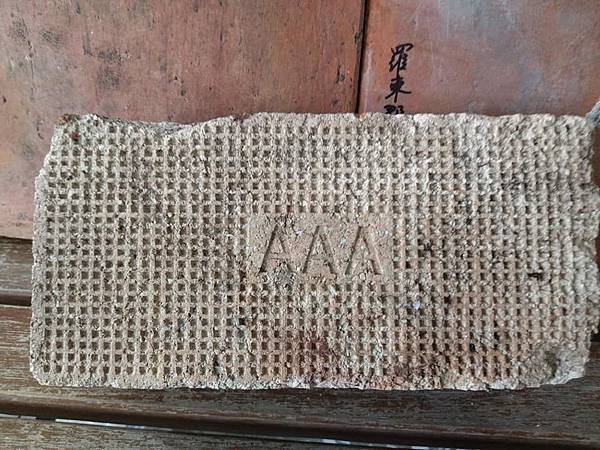 磚面正面中間有一個像賓士車mark倒過來的符號,旁邊陰刻"北投" "窯業",雖模糊但仍看得出來;背面AAA可能是代表等級。