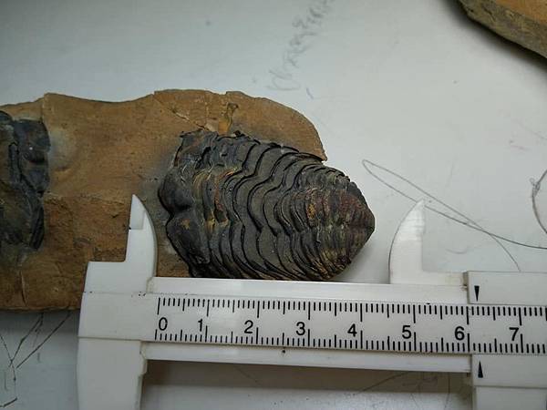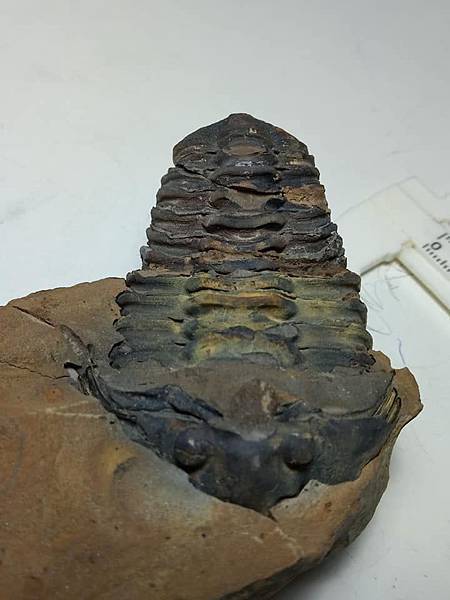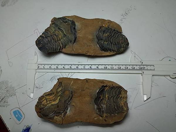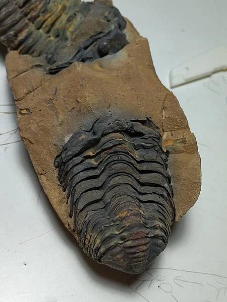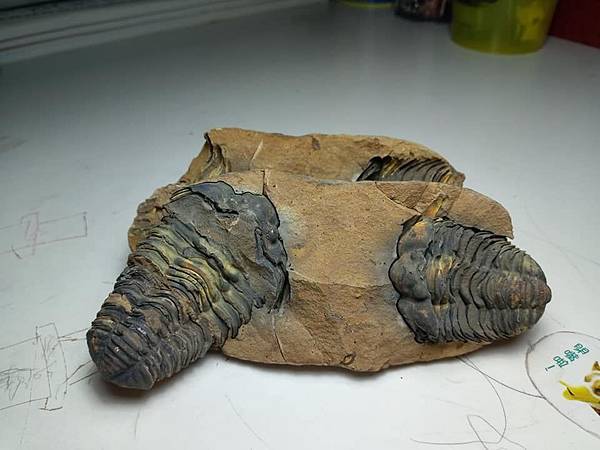 這個長形的結核頗大顆,上面2隻大型隱頭蟲,當然這麼大顆的結核在敲時很難不斷裂,所以結核有黏接,但接的很好,細看才看得出來