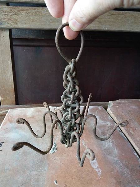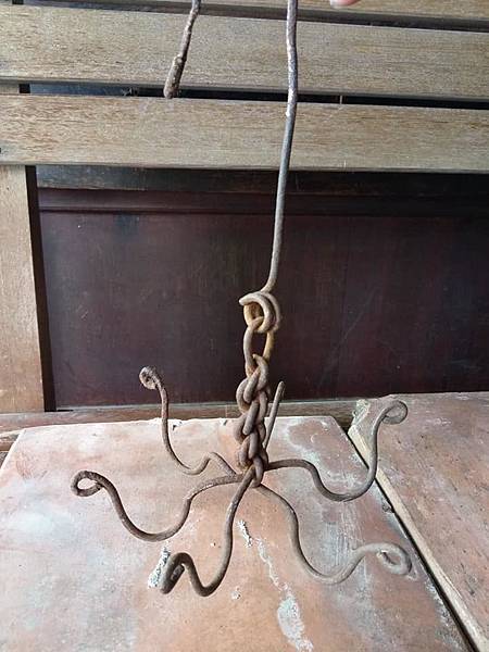 以前人家手工纏繞鐵絲成掛鉤 纏繞之餘不忘美觀與創作 真是佩服前人追求飯飽之餘 還富有美學之觀 相信這是漸進的 最先可能簡單折個可以掛東西就好 後來慢慢加點變化 再來複雜 庶民之用 才會充滿民間美學