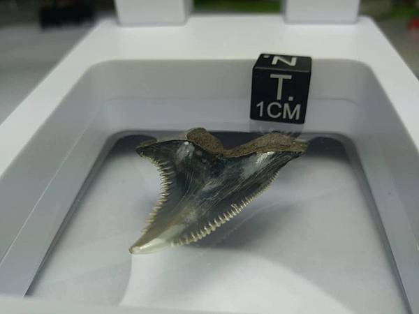 兩側齒鋒有明顯的鋸齒 牙根中間處有突起到琺瑯面 牙齒最大大概就這種尺寸 牙尖牙鋒及琺琅質都有很好的品項