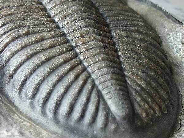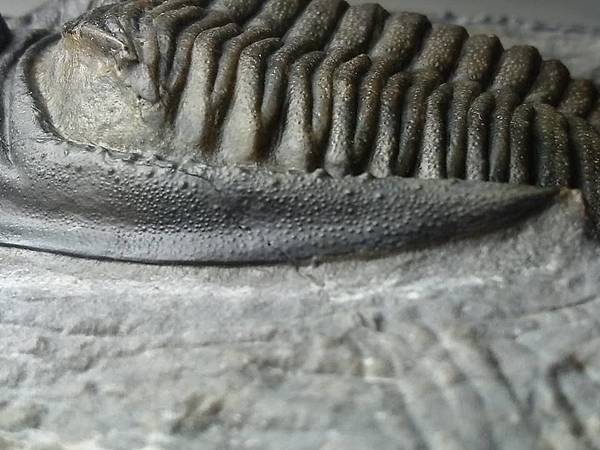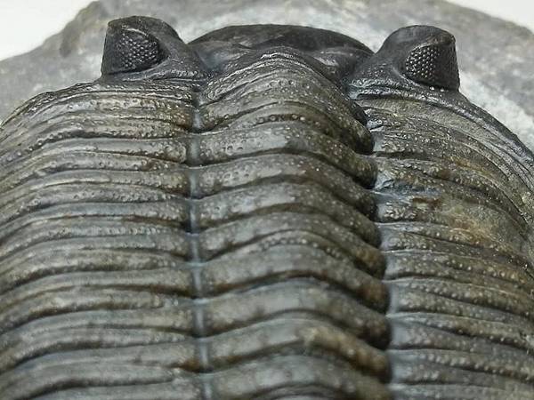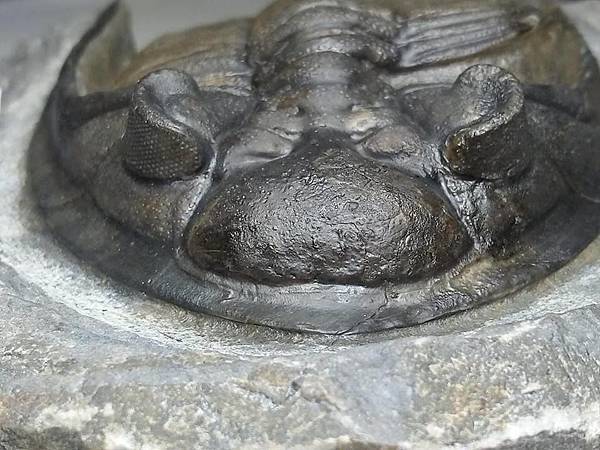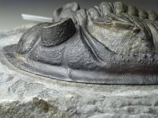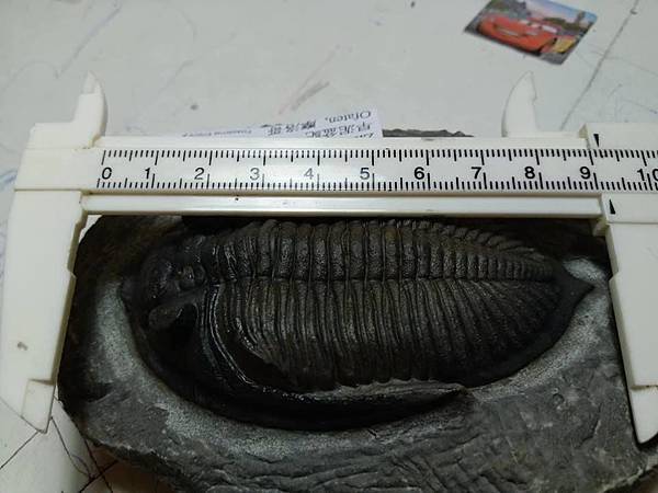 可法蟲屬於達爾曼蟲科,主流學說認為它們兼具掠食者與清道夫的角色,一雙漂亮的裂色眼代表它們的好視力適合掠捕。這件蟲體約9.1cm,算是很大隻,複眼及三葉上的細小突疣都有清修出來,是個很棒的標本。