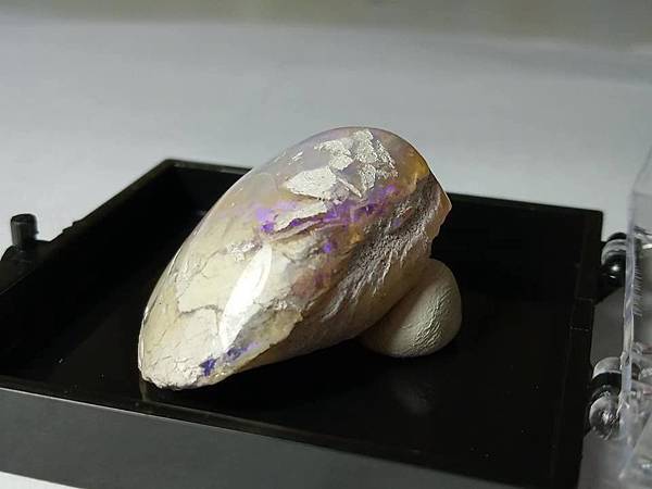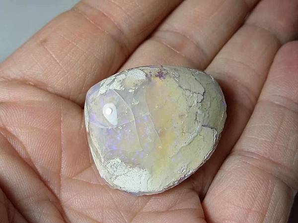 化石主要出現在砂質沉積岩中,由於火山地質區含有豐富的矽酸岩,當帶有高濃度二氧化矽的熱水流經砂質沉積岩時,其中的貝類化石就被蛋白石化。有些則是貝殼被溶蝕掉,只剩下內鑄模的蛋白石,這種內鑄模蛋白石化的化石通常會有局部的透明、表面會有高亮度的彩遊光,也就是玩家所說的火光。火光決定蛋白石的價錢,一顆稀有顏色及高亮度的火光,市場上的價格往往令人咋舌。至於火光的成因則在電子顯微鏡發明後才被找到。