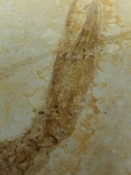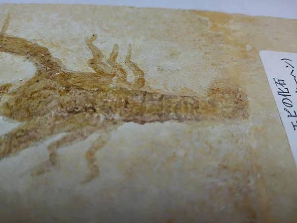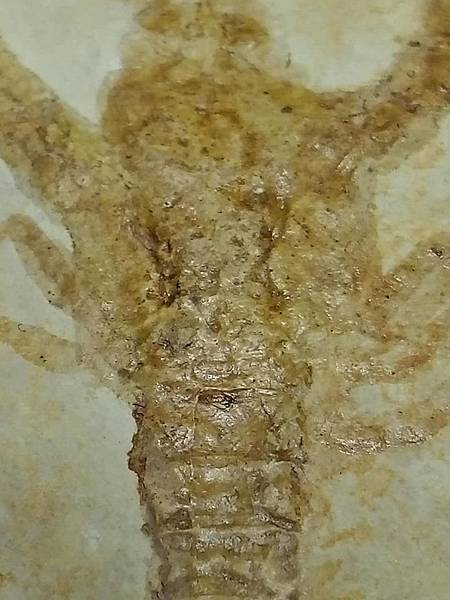 這件龍蝦化石尚為完整立體,但由於殼薄,所以有上一層保護漆,以免變成蝦味先的屑屑。