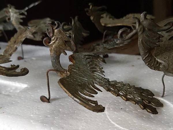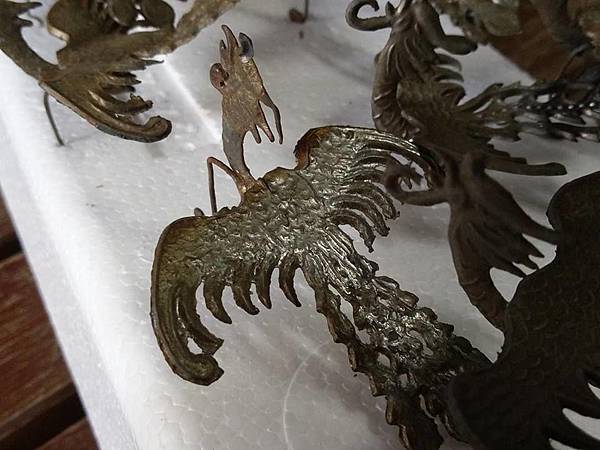老錫燈的部件-鳳凰、龍形 錫金屬柔軟,可自行朔形
