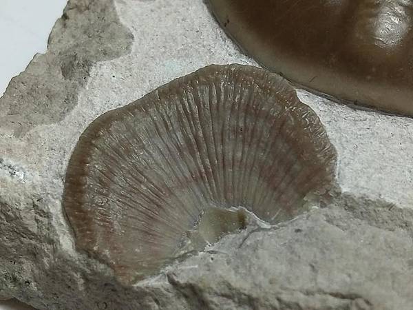 最後一張圖是網摘圖,經由比對,母岩上的腕足有可能是Chonetes(戟貝),生存於晚奧陶紀至中侏羅紀,生活在海底鬆軟的石灰泥基層上。我們暫且視之,待更好的答案。