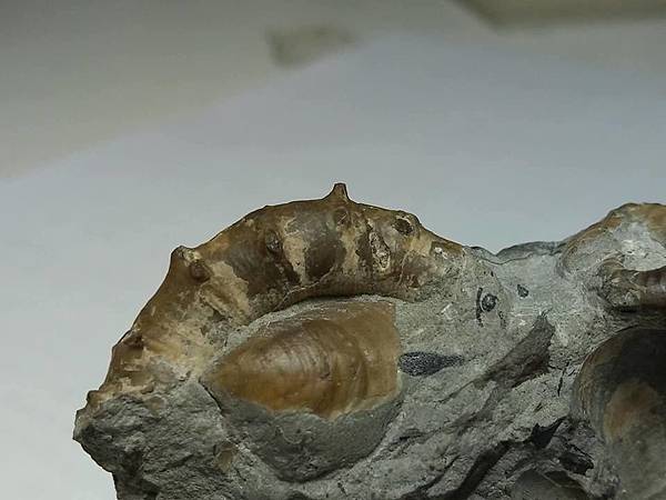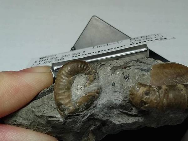 這件標本原始的狀態其實還好,所以我還是動手想把肋條上的棘清出來及把母岩整理一下。雖然龍菊石的本體只有一小段,但有機會收到這樣的標本已經滿足了。龍菊石的旁邊則是船菊石。