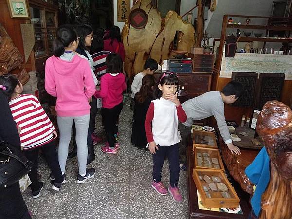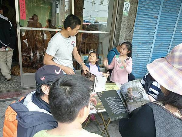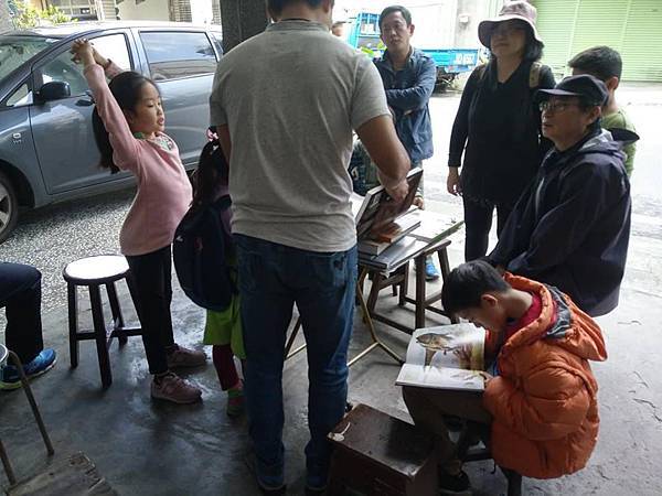 室內課結束後步行3分鐘到我家看化石,人太多所以分批,還沒輪到的人,我亭仔腳有準備一桌化石書給大家翻閱。