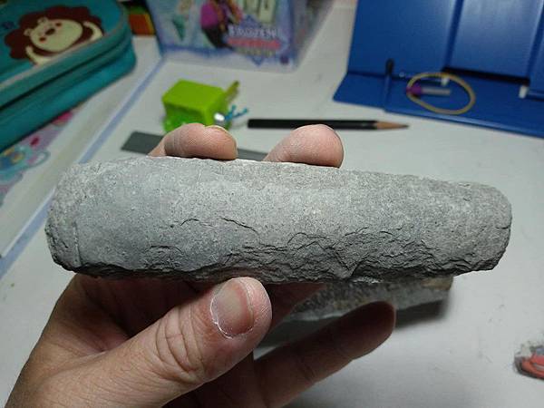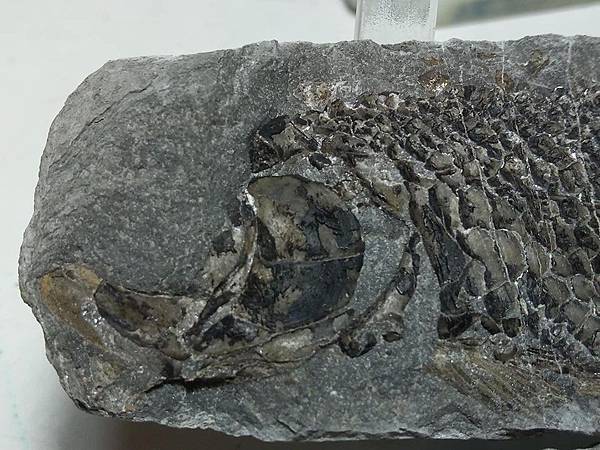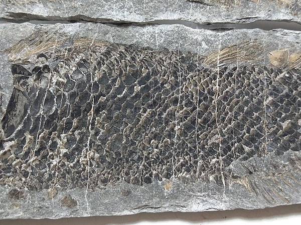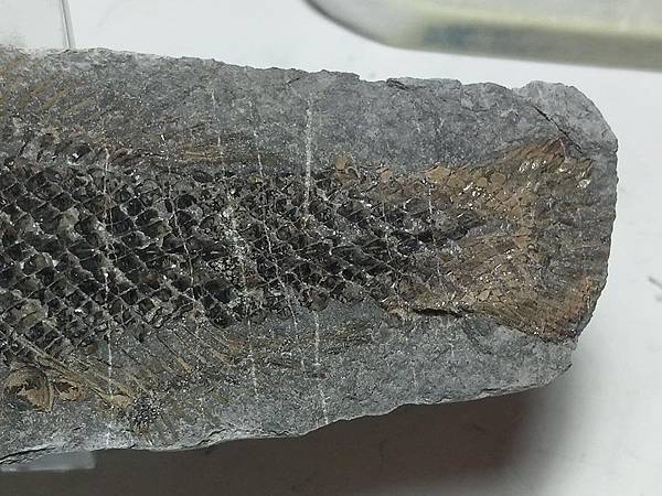 這一顆句容的魚結核是上禮拜六自己敲開來的,有鑒於上一顆陸陸續續居然敲了一個禮拜才開,這顆令我驚喜的是居然10分鐘就開。另外,瘦扁細長的結核,原本想說敲開後身體會斷成幾節,令人驚喜的是居然都沒有斷,僅有陰模的頭部有小斷一塊。你看圖片的魚身有一條一條細小的白色石英脈跑過,照道理這個地方比較脆,容易從這些地方斷,但幸運的是都沒有斷。仔細看陰陽模都有魚鱗,一般的結核是很明顯分陰陽(化石面、凹模面),這種魚結核卻陰陽不明顯,兩面都有,真是太棒的結核。
