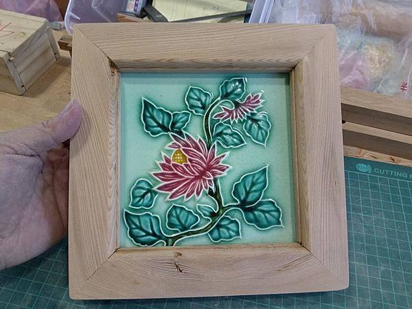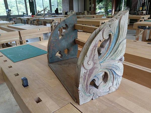 老物新用,材料是礦物彩插角、衣櫥檜木角料、檜木床板,全部都是拆卸下來的舊料