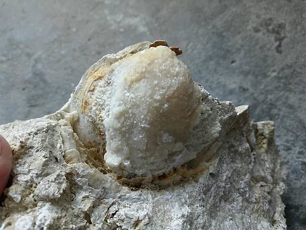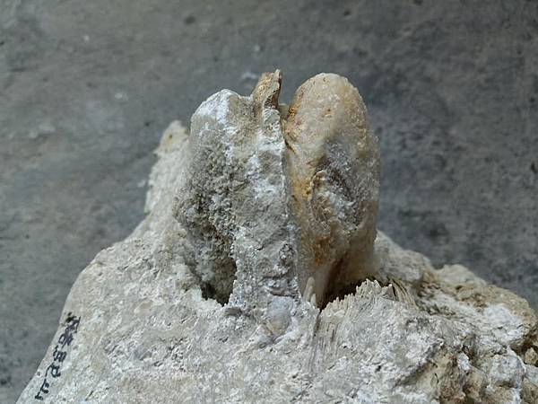這是高雄駱駝山石灰岩礦區的海菊蛤化石,外殼都已經溶蝕掉,內鑄模化石為整個石灰岩及方解石填充。 海菊蛤物種的型態及分布範圍差異頗大,但牠們其實與扇貝屬於同一個總科。與牡蠣科物種黏合在岩石上不同,海菊蛤都以足絲來固定。