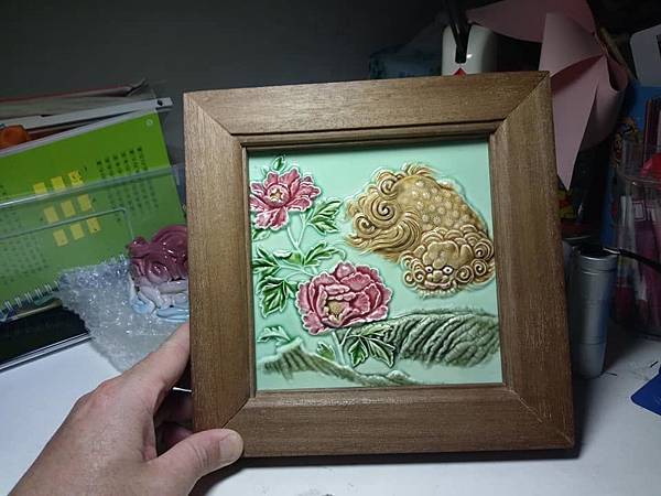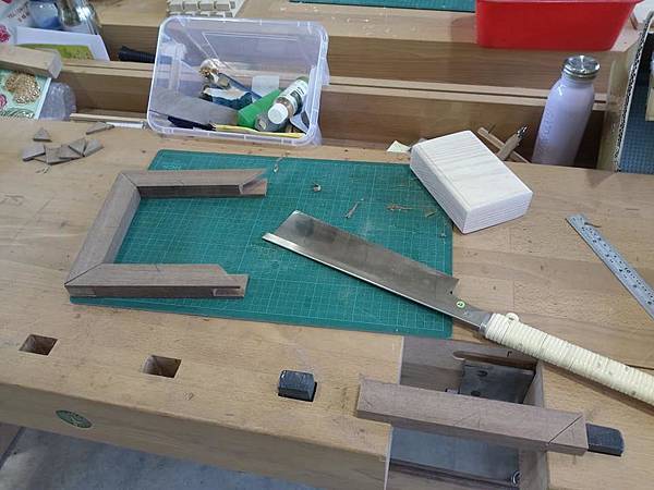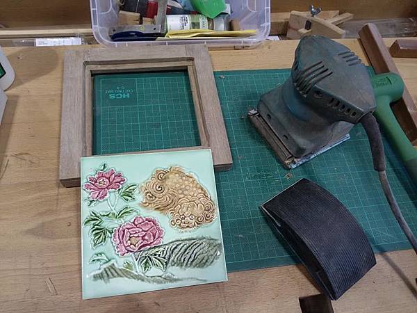 這隻捲捲毛很可愛,帶回家養 木工課已經是第二期了,機器+手工可以半天作好一個三缺榫的花磚框 只要有料,把握每次上課機會,帶回一個框 這次的框不是台檜,但作起來色澤也不錯