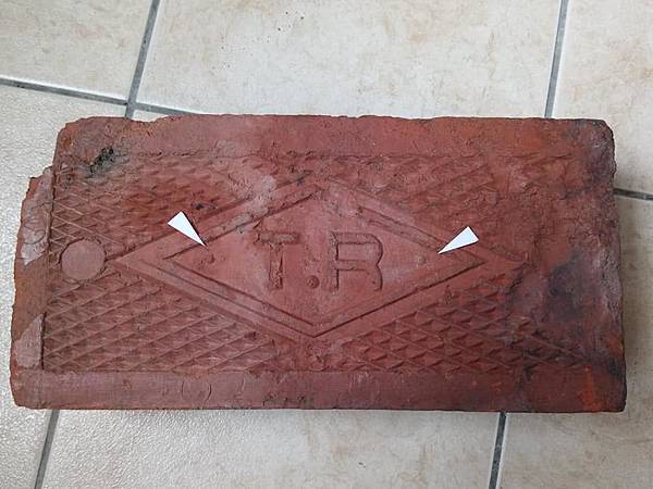 上次金瓜石買的磚洗一洗、作記錄 1.陶字磚右側有一點 2.TC磚,稀少,查不到來歷 3.TR磚,左右各一點 4.TR磚下面2點 5.TR磚下面3點 6.北字磚