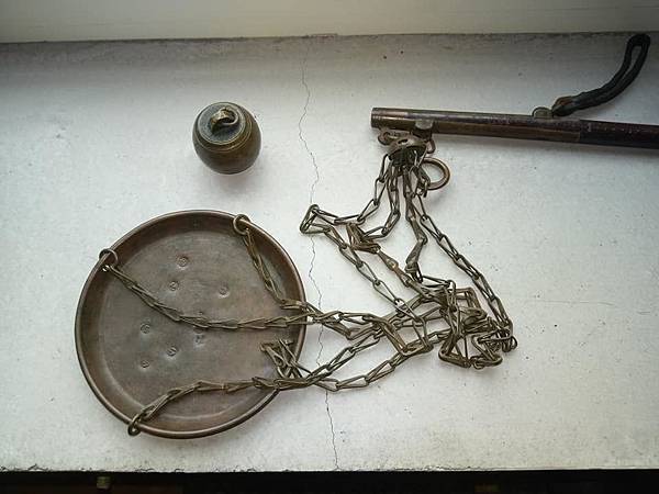 不同於台灣的秤錘形式 因為它是日本的,前輩說是日本江戶時代的 全銅、保存完整,秤錘及秤盤上有一些看不懂的記號 感謝前輩的厚愛,我會好好保存及展示的
