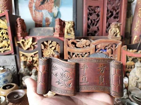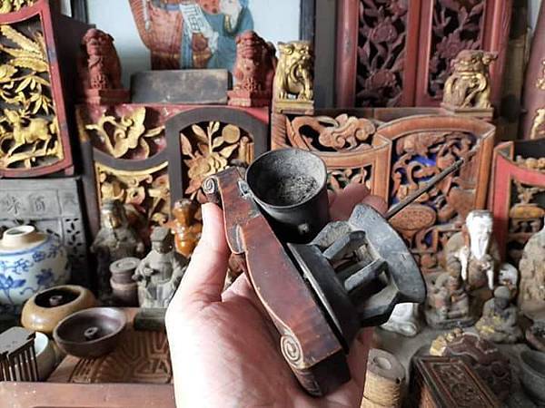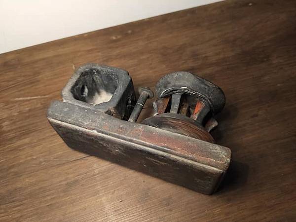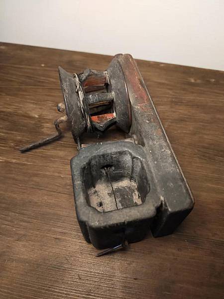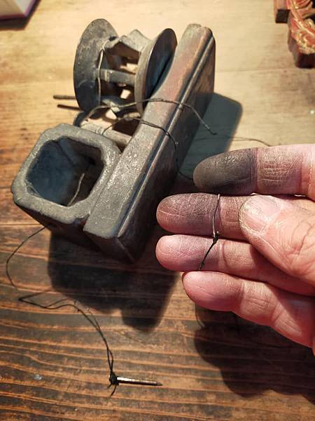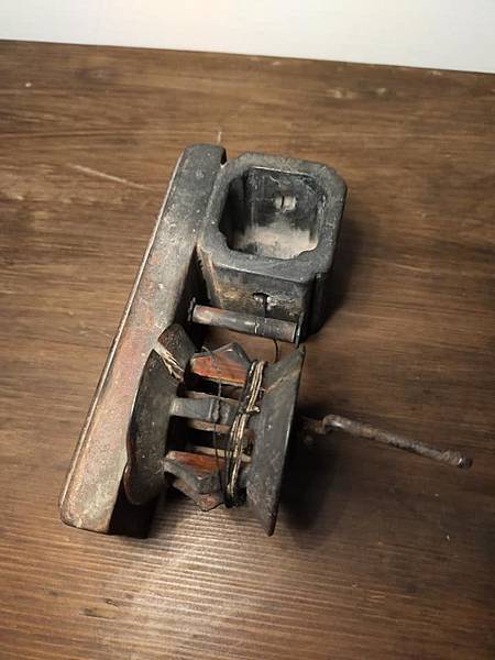 說來有緣 話說上次去藏家那邊看到一個驚豔的東西要大家猜看看,原來是墨書方員平直的墨斗 上週去民藝店暗黑的櫃子裡被我翻到這個同樣形式的墨斗,同樣一塊小板,側邊安上墨斗及捲線輪,整個小巧可愛,跟方員平直一樣有入清的台灣老墨斗 買來後把它整理一下,線墨猶存,手都弄的黑黑的,證明這件老墨斗是有實際在使用的