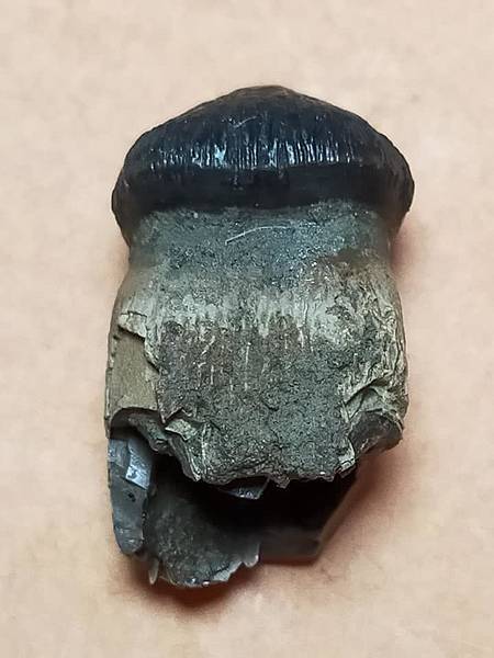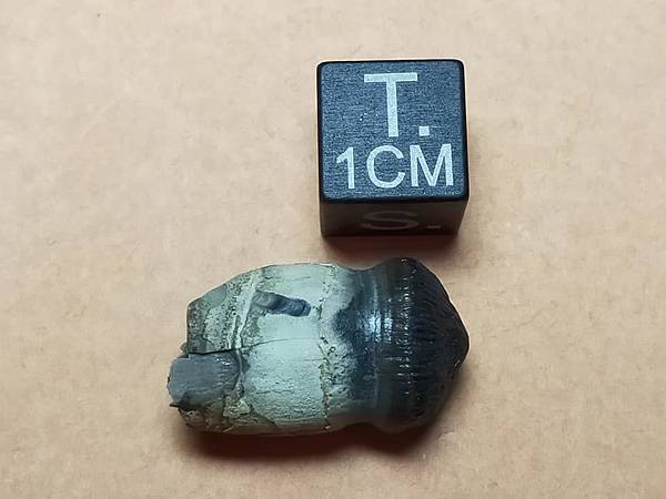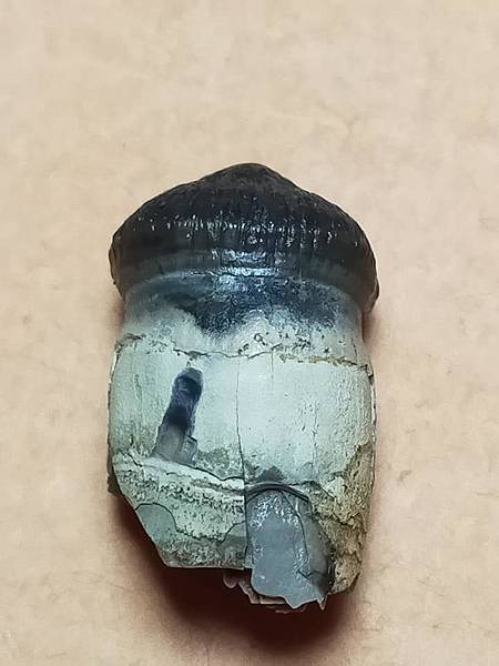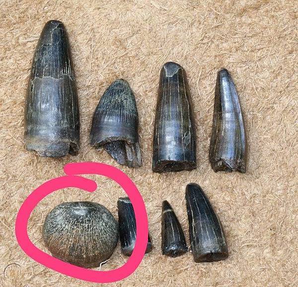 看就很像滄龍類的埃及圓齒龍,但尺吋上小一號,中間突起也比較緩、另外牙根中空,所以可以確定是鱷魚牙。由最後張圖(網摘圖)看來各部位的牙齒長的不一樣,一般我們看到的是錐形牙,這種球形牙少見,所以才這麼陌生。 北方鱷 Borealosuchus(意為“北方的鱷魚”)是生活在北美白堊紀晚期至始新世的鱷類,已經滅絕。B. sternbergii種是來自北達可達州,晚白堊紀,屬於比較古老的種。