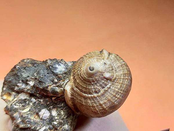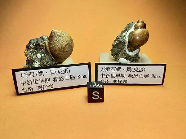 左邊那顆螺的紋路都在,所以寧願不打掉外殼,保留螺紋之美,有可能是棋盤鬘螺的幼體