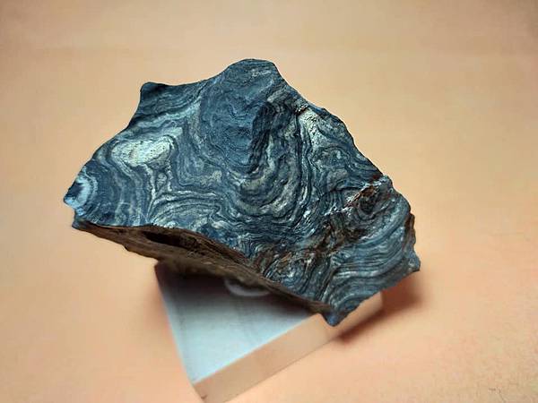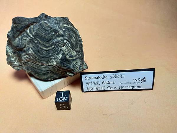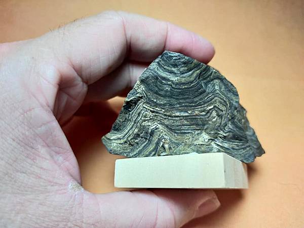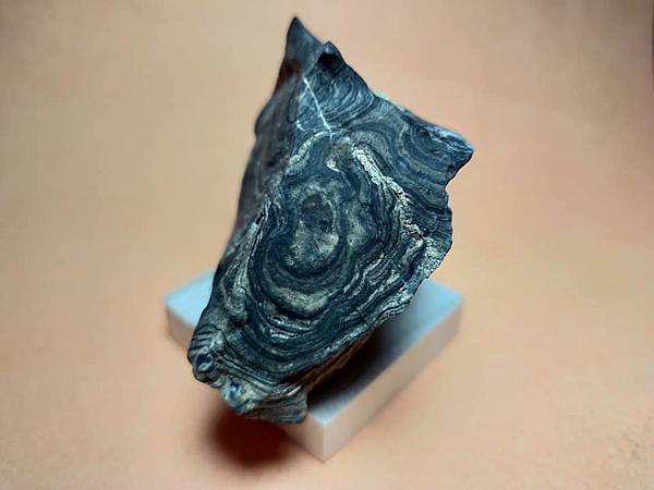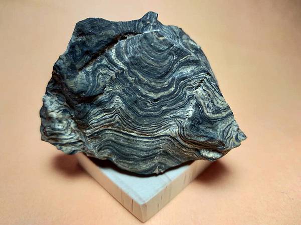 這是來自玻利維亞米拉弗洛雷斯地層的疊層石(Greysonia sp)原石。他們通常被切片拋光以便看它美麗的條狀紋路,但我特地買了這顆原始的模樣,四面八方都立體呈現層狀的沉積紋。