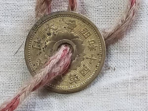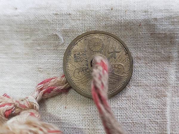 綁繩兩端有昭和14年日幣10錢,可知是日據時代的東西。