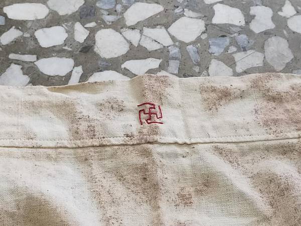 繡有紅色卍字,可知道是蘭陽地區的衣物服飾。