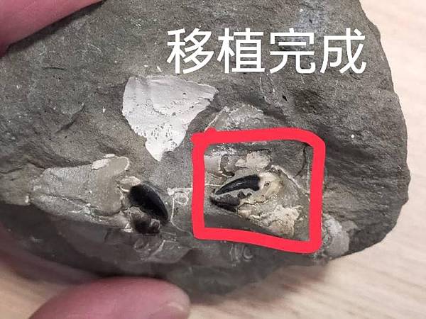 要移植手術的是一隻躲在巢穴裡的腹部朝上的公蟹,已經移植完成,這是正拍
