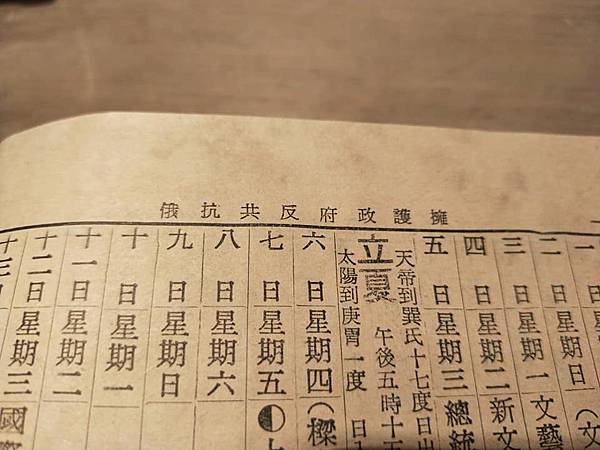 秦老闆的東西常秒殺,兩年前在他的臉書看到民國65年的農民曆亦然,沒想到今年過年前回羅東到第一線收貨的朋友去拜訪問安,就看到它立著貼在他家櫥櫃的底板,就這樣隨我回家了。