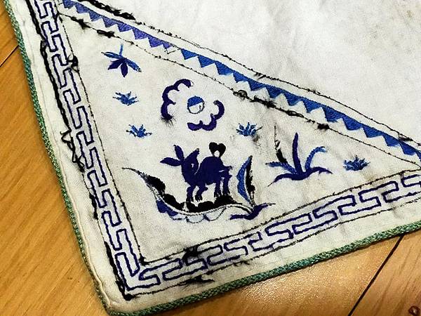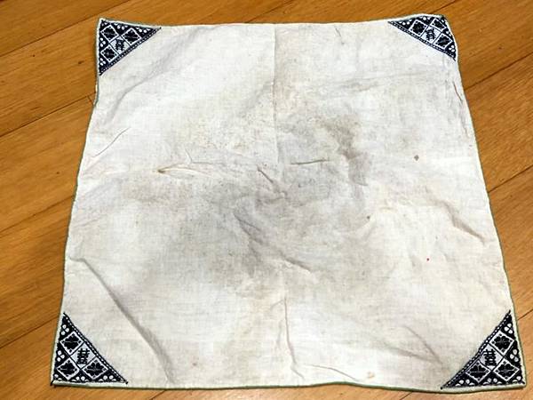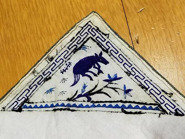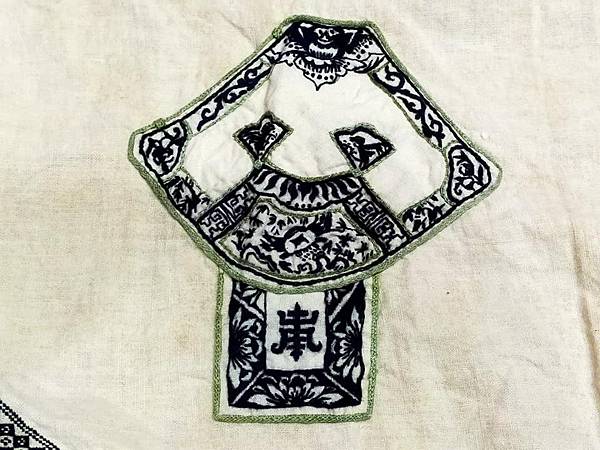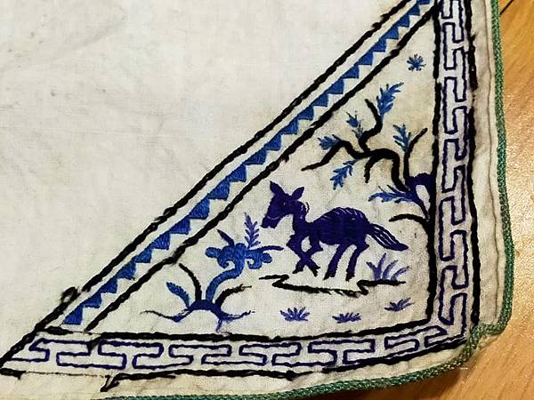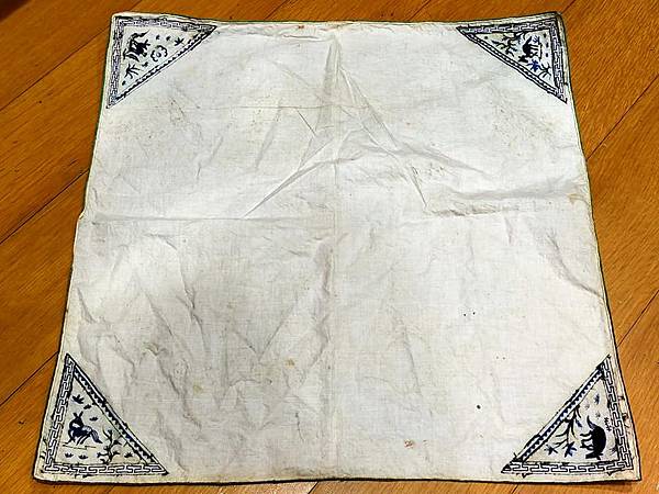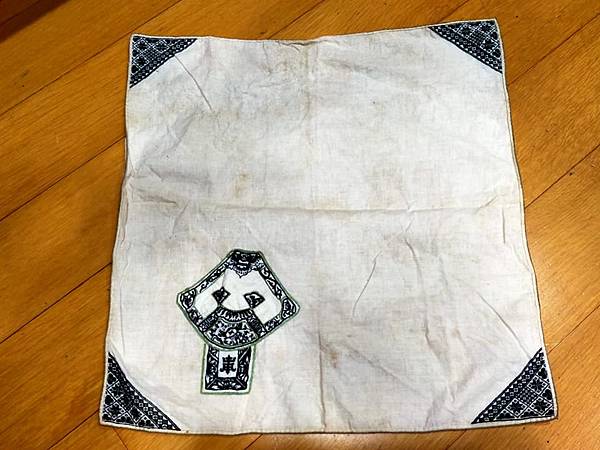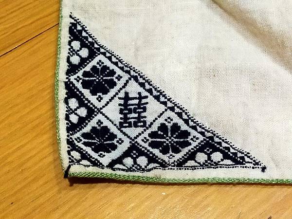 另外,手巾是拿來擦拭用的,所以我們會發現,刺繡大都僅繡於四個角落,圖案則是祥獸、吉祥字或搭配連紋等,中間白布部份則是擦拭用不刺繡。
