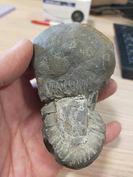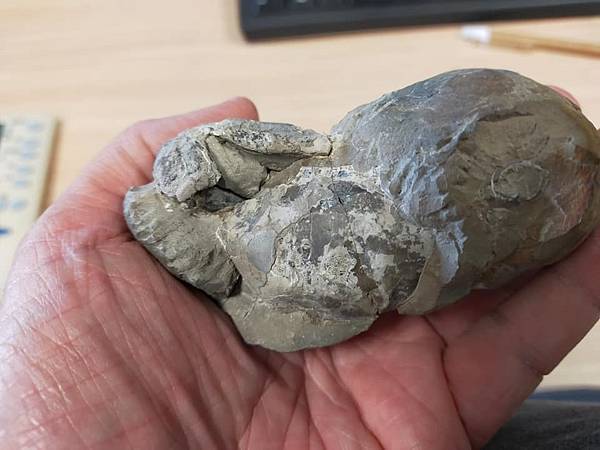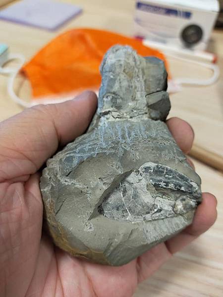 但只要是有"腫"的石頭我都不會放棄,像這顆啞鈴形的結核,一般不太會有餡,但我還是敲下去,有敲有機會!