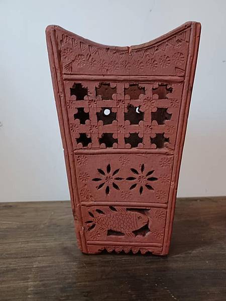 感謝王兄的幫忙,雖然斷腳但題材特殊,年年有魚,是屏東在地收的筷筒,所以還是收了。另外,排水口在背板也是第一次看到。