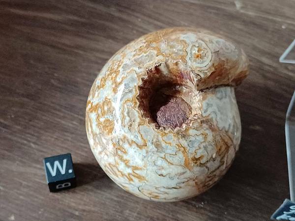 也因為方解石化,沒有外殼,所以適合拋光,拋光後亦能顯示出美麗的縫合線