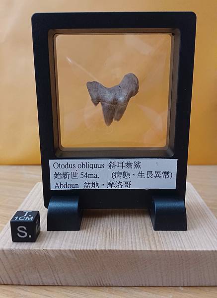耳齒鯊是一種已滅絕的鯖鯊,生活在大約5400萬年前的始新世。這是包括大白鯊在內的同一個鯊魚家族,並且可能是巨齒鯊的遠祖。這些牙齒是在摩洛哥 Khouribga附近的磷酸鹽開採作業中收集的。