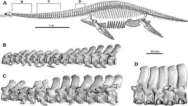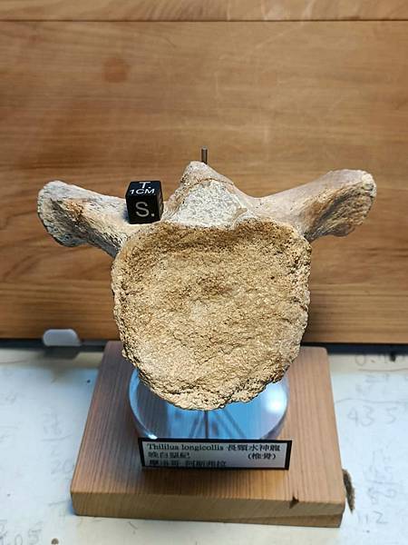 長頸水神龍是一種蛇頸龍,這件椎骨採集自摩洛哥阿斯弗拉古爾米馬以北的晚白堊紀地層。