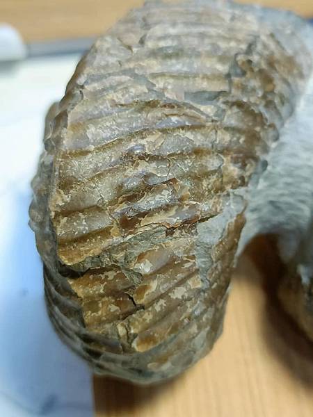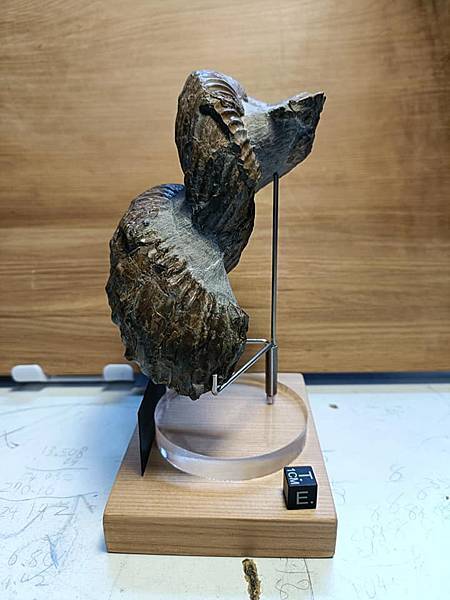 這件的清修難度在於殼體有部分擠壓下陷,要不是勇敢地把母岩清下去,下陷的殼段就不會見天日,也就不會有這樣完整的螺旋殼體片斷。是我很滿意的清修標本。