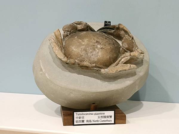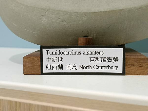 說到大型螃蟹化石就一定要提到紐西蘭產的Tumidocarcinus giganteus。分析其學名組成,種名giganteus有巨大的意思,屬名Tumidocarcinus分成Tumid+o+carcinus,前者有腫脹的意思、後者是賓蟹屬,所以中文學名我把牠翻作"巨型腫賓蟹"。