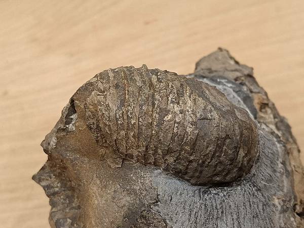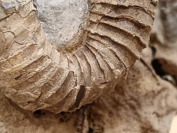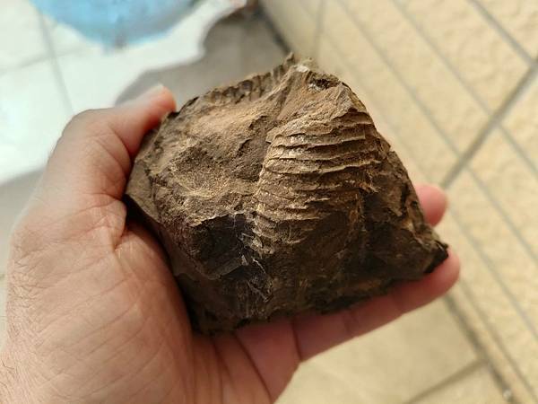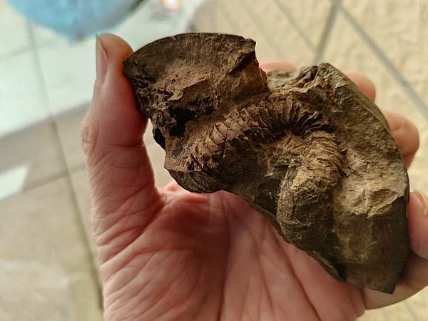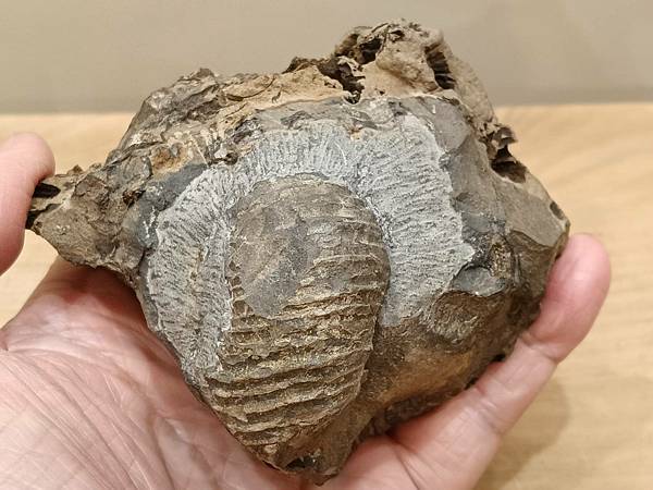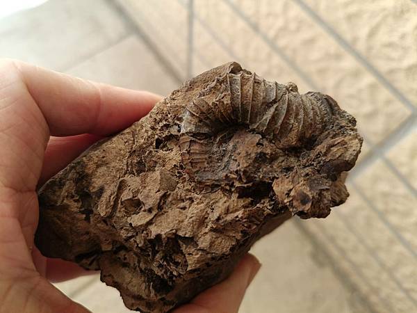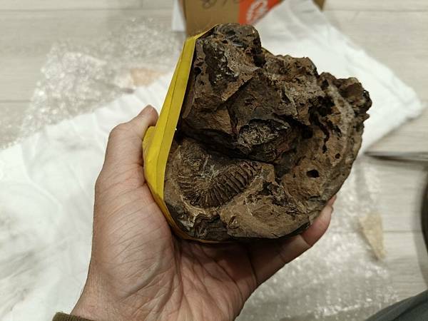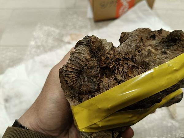 原始的結核,裂成3塊,3塊都有日本菊石,但都是個體的片段,屬於混亂埋藏型。