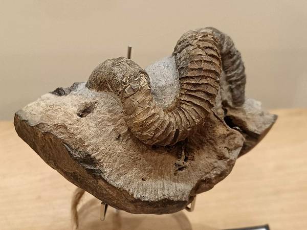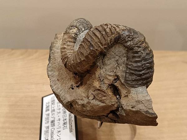 另外3個種為薩哈林(右上)、西方(左下)和巴克斯(右下)。本菊石是薩哈林種,最初在薩哈林島(庫頁島)被發現,比奇異種卷的更加鬆弛,肋條銳利形成鋸齒狀,雖在日本也有發現,但數量稀少。